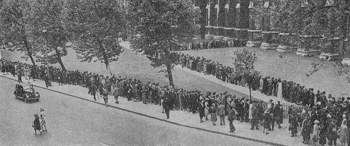 Люди йдуть на молитву до Вестмінстерського абатства у Національний день молитви, 26 травня 1940 року